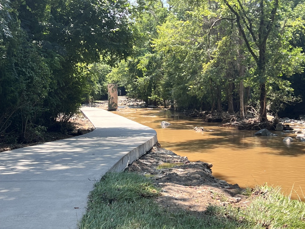 As storms and even remnants of tropical storms, such as Chantal, become even stronger with climate change, municipalities must be prepared for the expected higher stream flows and more frequent storms. One thing we know is that humans should avoid building structures in floodways. This includes paved greenways. Greenways, constructed often along streams, sustained damage. Bolin Creek and Morgan Creek greenways will be closed for several months for repairs estimated to cost millions of dollars. Read Terri Buckner’s Substack here about the damage to our local greenways. See the photo below of the Bolin Creek Greenway eroded after this recent storm event. Even heavy cement structures can be moved or damaged by flooding.