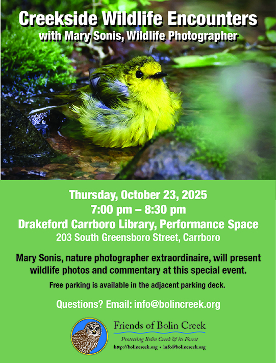 Mitch Woodard, NC State Extension, Friends of Bolin Creek, and Urban Sustainability Solutions will be hosting.